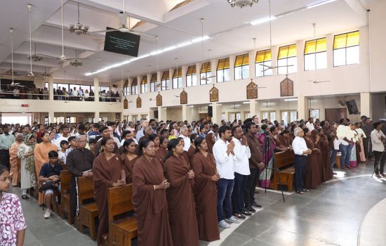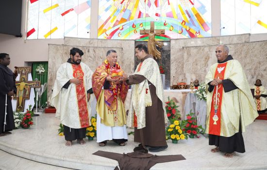 Led by the OFS fraternities of the parish and the neighbourhood, Br. Ignacio proceeded to the altar, accompanied by Br. Baptist D’Souza, OFM, Delegate of the General Secretary to the OFM Fraternitas Foundation, Rome; Br. Xavier Durairaj, the Minister Provincial; Br. Saji Mathew, the Vicar Provincial; and friars from the fraternity.