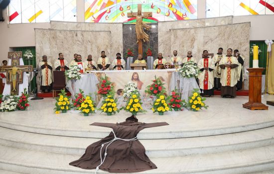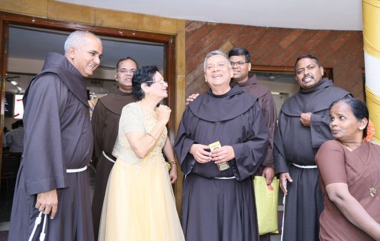 Led by the OFS fraternities of the parish and the neighbourhood, Br. Ignacio proceeded to the altar, accompanied by Br. Baptist D’Souza, OFM, Delegate of the General Secretary to the OFM Fraternitas Foundation, Rome; Br. Xavier Durairaj, the Minister Provincial; Br. Saji Mathew, the Vicar Provincial; and friars from the fraternity.